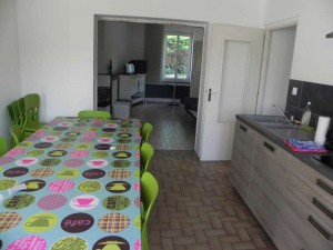 Cuisine équipée avec grand frigo, four, four micro-ondes, lave vaisselle, plaque vitro céramique.